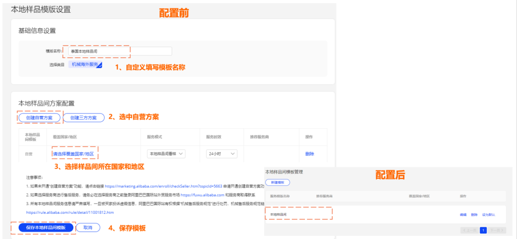 配置原则:•有自营海外仓、分公司等的国家先配置自营样品服务,没有自营使用三方海外仓服务